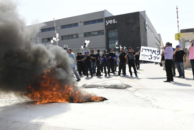 צמיגים בוערים (צילום: ועד עובדי yes)