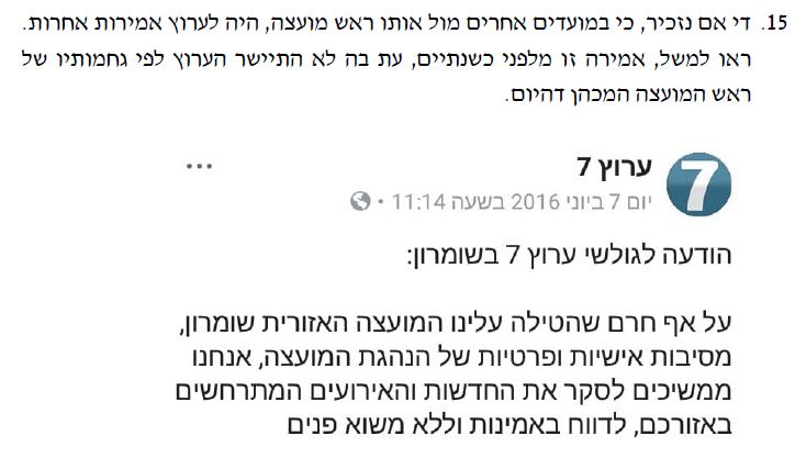 המועמד לראשות המועצה האיזורית שומרון, גרשון מסיקה, מאיים בתביעה נגד אתר האינטרנט ערוץ 7 בגין לשון הרע, וזאת בעקבות כתבה שפורסמה לפני מספר ימים באתר.