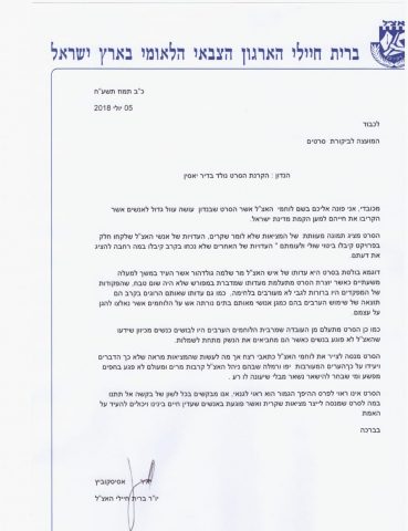 הסרט אינו ראוי לפרס, ההיפך הגמור הוא ראוי לגנאי. אנו מבקשים ממכם אל תתנו במה לסרט שמנסה לייצר מציאות שקרית ופוגע באנשים שעדין חיים בנינו ויכולים להעיד על האמת" סיכמו בפנייה למועצה.