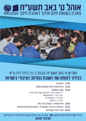 תנועות הנוער העובד והלומד, בני עקיבא ודרור ישראל מציינות במשותף את יום תשעה באב ומזמינות את הציבור הרחב לאוהל בכיכר רבין, "למאבק בשנאת חינם ולחינוך לאהבת חינם"