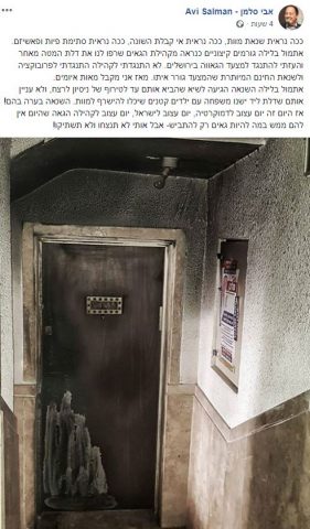 בחשבון הפייסבוק שלו כתב סילמן כי "אתמול בלילה גורמים קיצוניים כנראה מקהילת הגאים שרפו לנו את דלת המטה מאחר והעזתי להתנגד למצעד הגאווה בירושלים".
