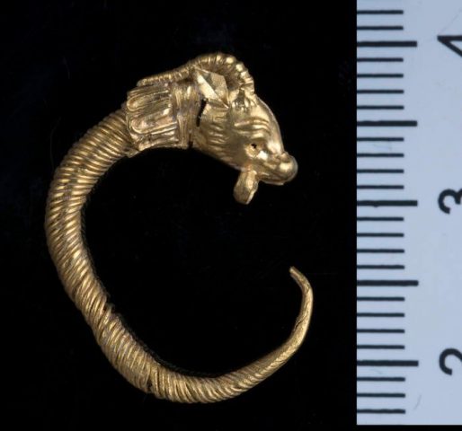 עגיל זהב מרהיב, מעוצב בדמות חיה בעלת קרניים, המתוארך למאות ה-2-3 לפני הספירה (התקופה ההלניסטית), התגלה בחפירות הארכיאולוגיות של רשות העתיקות ואוניברסיטת תל אביב בחניון גבעתי שבעיר דוד, בגן לאומי סובב חומות ירושלים.
