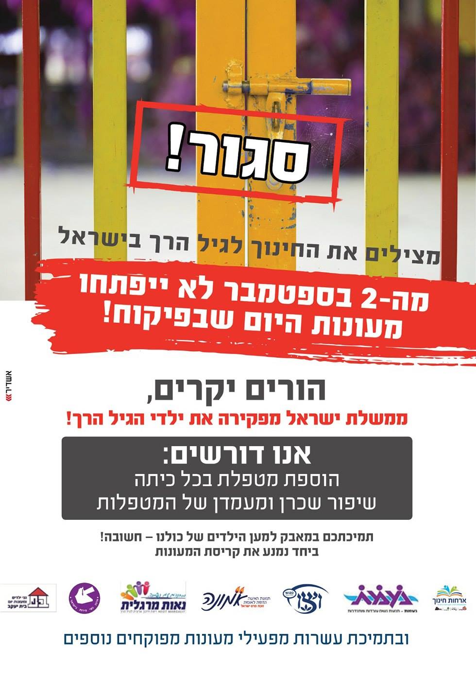 שרון פרסם הערב את שלט המחאה של ארגוני המעונות, בהם גם אמונה, ויצו, נעמ"ת ועוד, וכתב: "מצילים את החינוך לגיל הרך – גם אצלנו בבנימין".