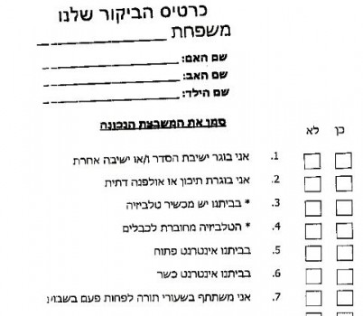 אך בדף השלישי של טופס ההרשמה מתבקשים ההורים למלא את "כרטיס הביקור של המשפחה שלנו".