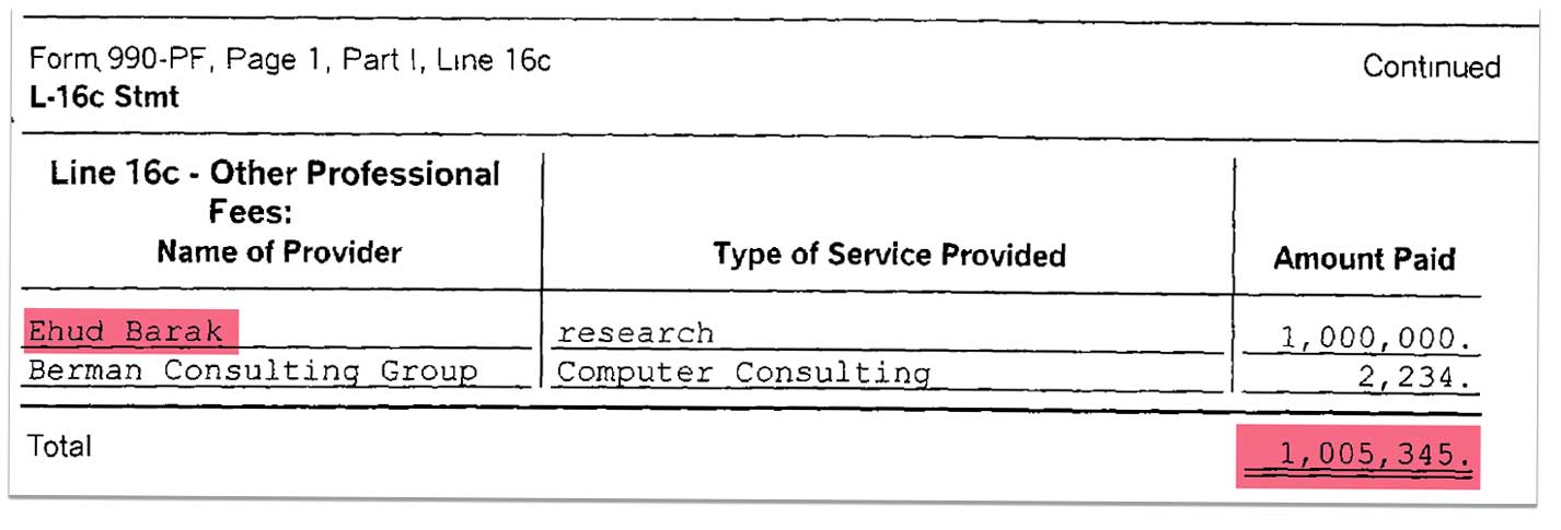 על מה קיבל אהוד ברק 1.8 מיליון דולר בשנתיים?