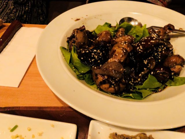 בגזרת הפירות הופיע אגס בסלט. גרעיני חמנייה, וויניגרט חרדל ודבש סגרו את מגוון הטעמים לפני הוספת העוף המעושן. הירקות היו טריים, והטעמים בסלט היו מאוזנים. יחס עוף הסלט היה טוב, והסלט לסיכום היה כיף.
