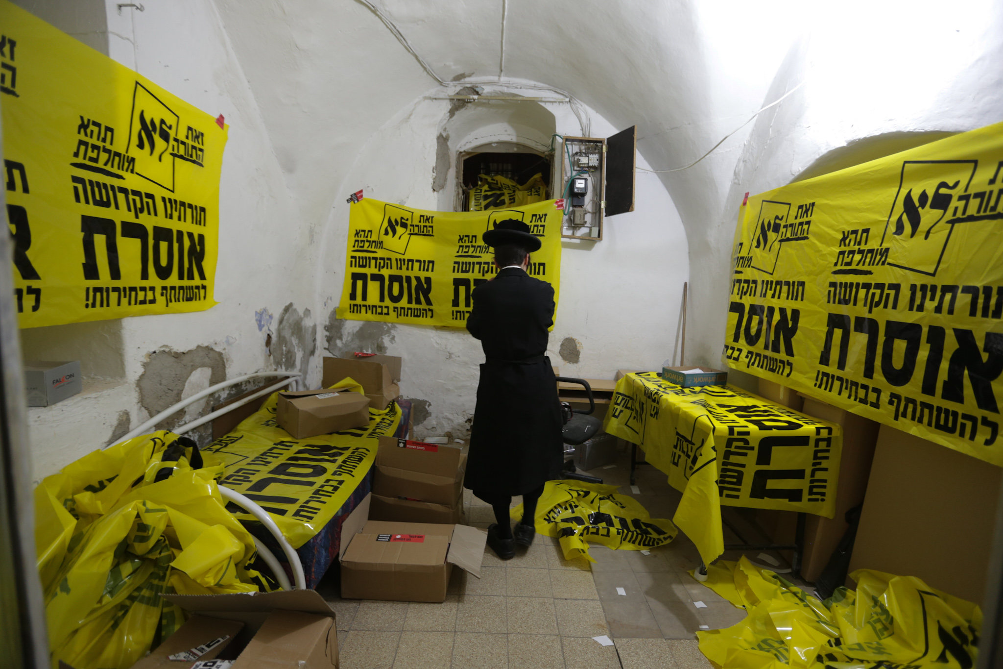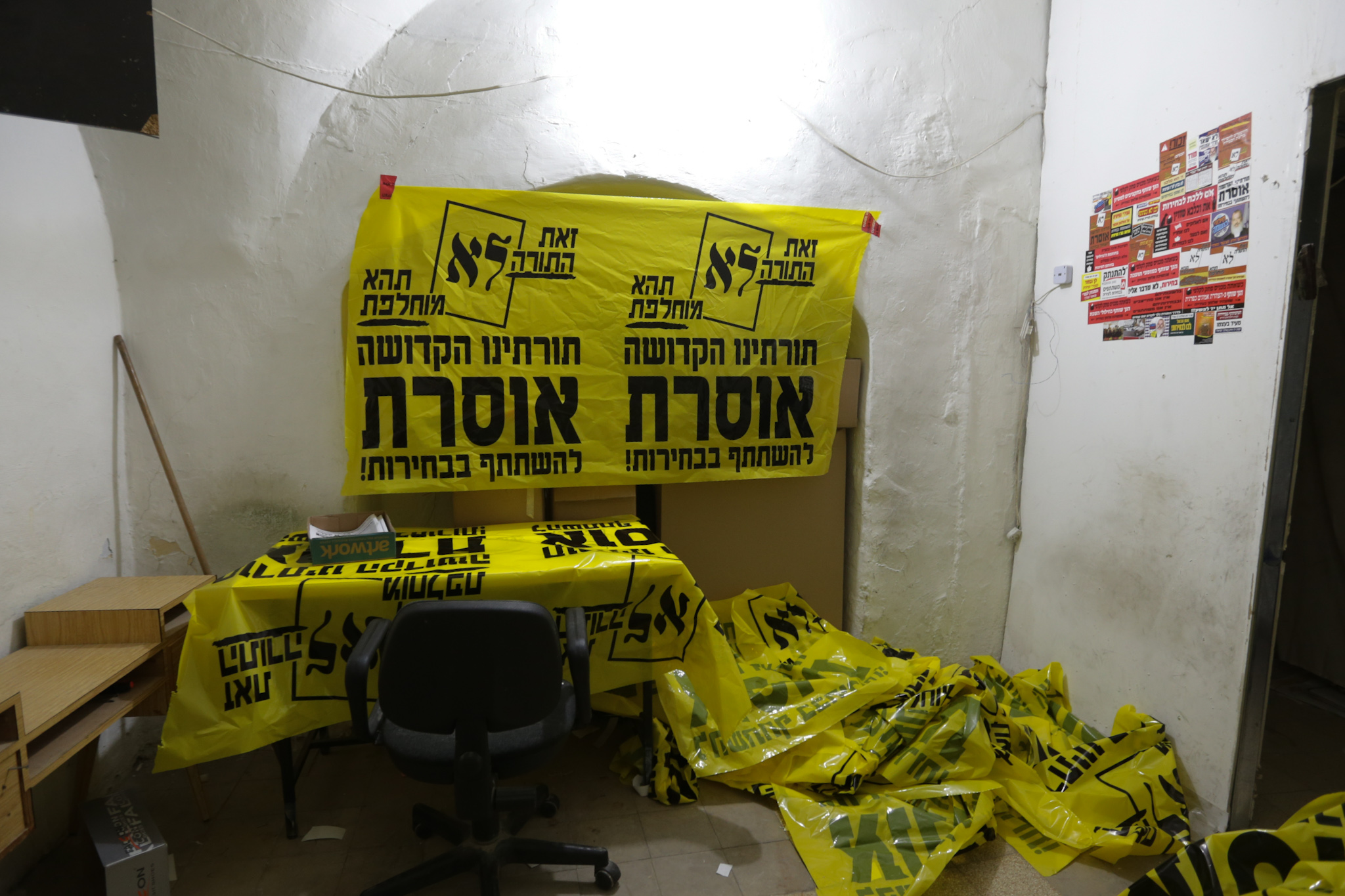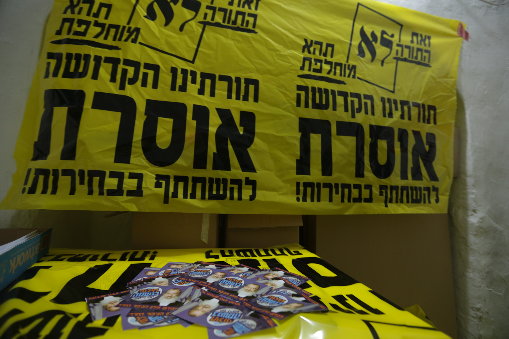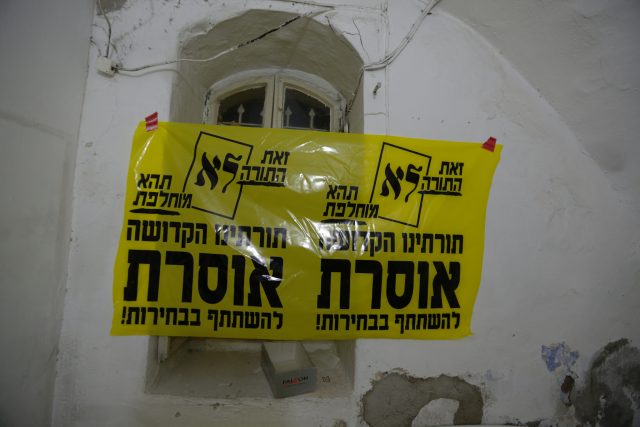 בין שלל פרסומי המועמדים, שטפו בימים האחרונים את השכונות החרדיות בירושלים ובבני ברק גם מודעות ענק, גרפיטי ושלטי חוצות הקוראות למגזר החרדי שלא להצביע בבחירות לרשויות. בין הביטויים נכתב: "ש"ס ודגל התורה מסיתים ומדיחים"; "יהודי לא מצביע" ו"תורתנו הקדושה אוסרת להשתתף בבחירות"