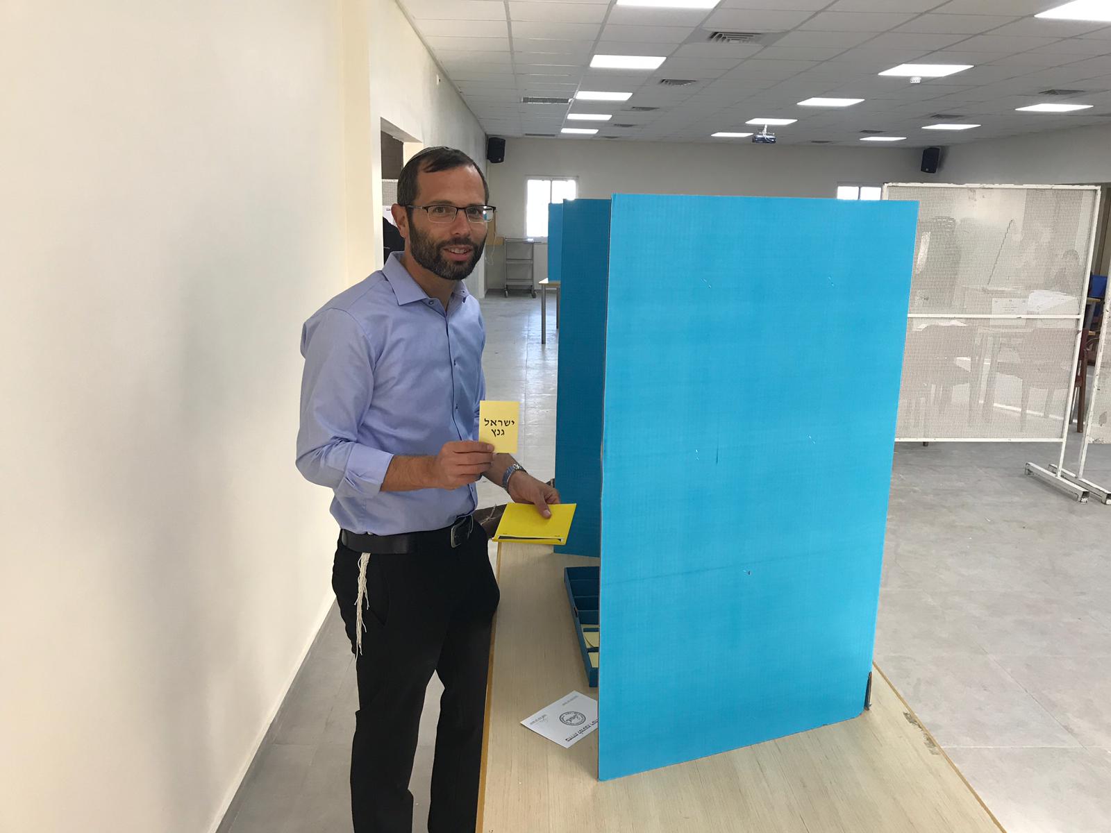 07:10: הח"כ הראשון להצביע מוטי יוגב, מהבית היהודי. תושב דולב במערב בנימין. ייבחר בין שילה אדלר לבין ישראל גנץ.