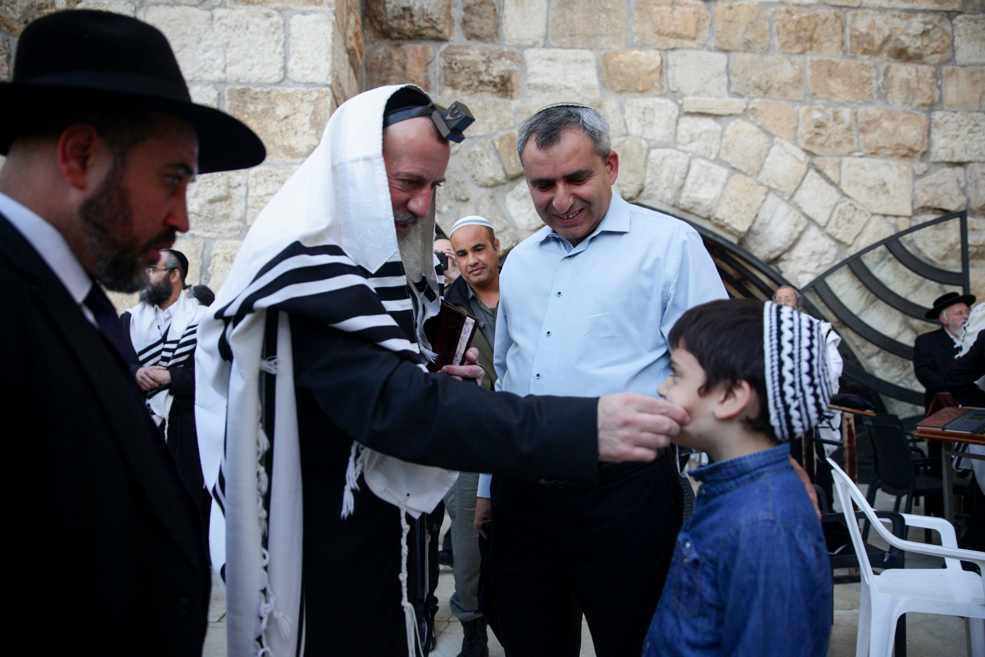 8:10: משה ליאון, אחד המועמדים המובילים לראשות עיריית ירושלים, פתח את יום הבחירות בתפילת שחרית בכותל המערבי.