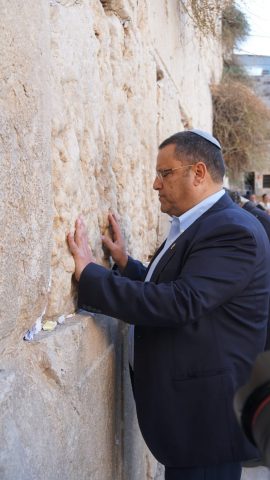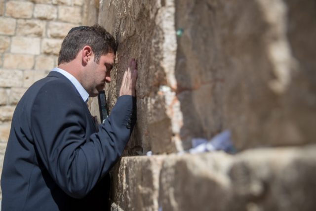 12:05- לאחר שמשה ליאון, זאב אלקין ויוסי דייטש ביקרו הבוקר באתר הקדוש, גם המועמד עופר ברקוביץ הגיע כעת לכותל המערבי לשאת תפילה.