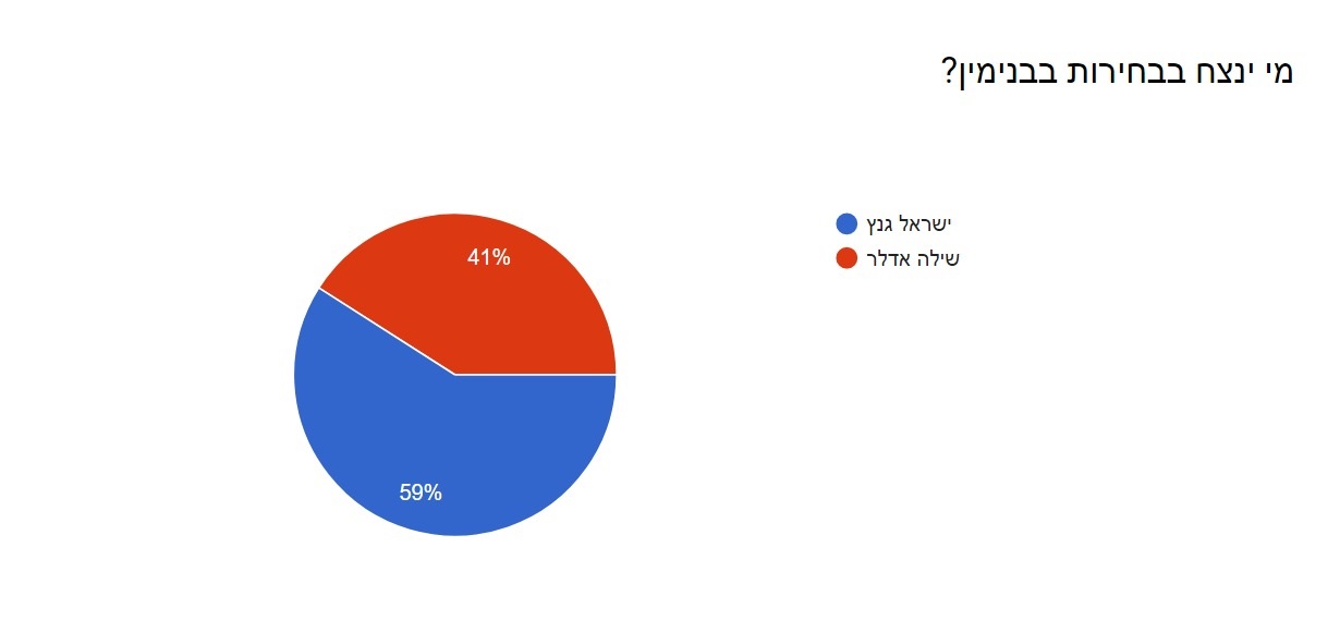 בגזרת בנימין, הבחירות הכי צמודות והכי מרתקות, הלכו רוב גולשי סרוגים עם המועמד ישראל גנץ שגובר בפער גדול יחסית על שילה אדלר.