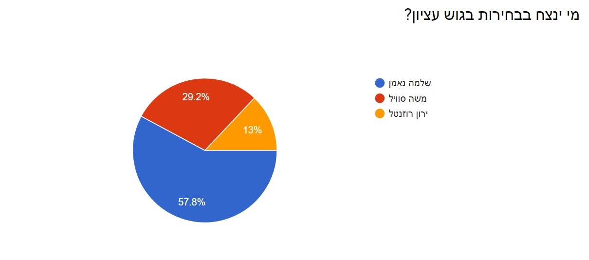 אין הפתעות בגוש עציון. למרות קמפיין נרחב של שלושה מועמדים, רוב גדול של גולשי סרוגים הימר כי שלמה נאמן מנצח כבר בסיבוב הראשון את משה סוויל וירון רוזנטל.