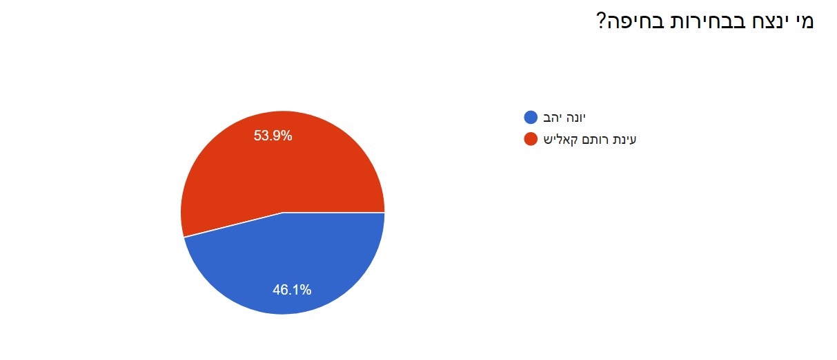 בבחירות בחיפה, דווקא נרשמת הפתעה, כשהמועמדת עינת רותם-קאליש, שכמעט נפסלה, גוברת על יונה יהב בפער של 7%.