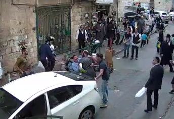 בשלב הזה פנה האברך לשוטרים כשידיו שלובות, וביקש לברר מה עשה הילד, אלא שהשוטרים קפצו עליו, חנקו אותו, השכיבו אותו על רצפת המדרכה ואחד מהשוטרים גם הכה בו באגרופו.