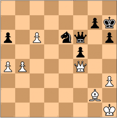 46. מה-ד6! מה-א1+ | 47. מ-ח2 פ-ד4? | 48. ג7 מה-ג3 | מה-ג5 ואי אפשר למנוע הכתרת מלכה. השחור נכנע לאחר 3 מסעים.