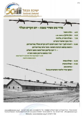 בישיבת הכותל מקיימים שיחה מיוחדת בה ירצה איש העדות וניצול השואה יוסף קליינמן מירושלים. קליינמן העיד במשפט אייכמן ויספר על הזכרונות מהשואה והסיפור האישי שלו.