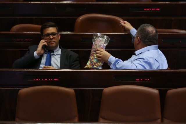 אמסלם וחזן לאחר ההצבעה על החוק (צילום: חיים גולדברג)
