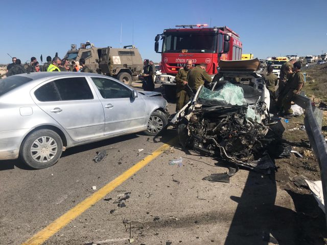 חובש בכיר במד"א אלי רוזנברג ופראמדיק מד"א עודד דסקל סיפרו: "מדובר בתאונת דרכים קשה מאוד בין משאית ו2 כלי רכב פרטיים. צעיר בשנות ה 20 שנהג באחד מכלי הרכב הפרטיים נלכד במושב הנהג כשהוא מחוסר הכרה, יחד עם צוות רפואה של צה"ל שהגיע במסוק למקום הענקנו לו טיפול רפואי בשטח וביצענו בו פעולות החייאה אבל הפציעה שלו הייתה קשה מאוד ורופא צבאי נאלץ לקבוע את מותו בשטח. גבר כבן 50, נהג הרכב השני שנפגע באורח בינוני שכב על הכביש וסבל מחבלות מכל חלקי גופו, העלנו אותו במהירות לאמבולנס והוא פונה במצב יציב לבי"ח סורוקה, נהג המשאית, פלשתינאי כבן 50 שנבדק בשטח פונה גם כן לבי"ח כשהוא בהכרה מלאה."