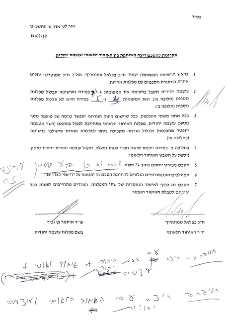 בדיעבד התברר – בעוצמה יהודית צילמו את הצעתו של בן גביר ללא אישור, וכעת הם טוענים כי לא מדובר בהצעה אלא בהסכם חתום.