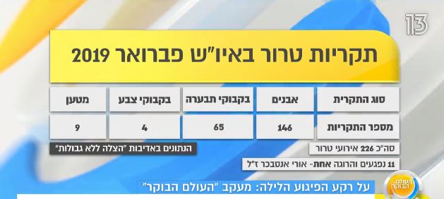 בתכנית "העולם הבוקר" עוקבים אחר אירועי הטרור ביו"ש שמתרחשים כל העת ומעודף החדשות ושגרת הדיווחים לא מגיעים לכותרות. כאשר מספר תקריות הטרור לא יורד ומספר מקרי האבנים שנזרקו על יהודי עומד על 146, יידוי של 65 בקבוקי תבערה, 4 בקבוקי צבע ומספר ענק של 9 מטענים, כל זה רק בחודש האחרון מדיווחים של 'הצלה ללא גבולות יו"ש'.