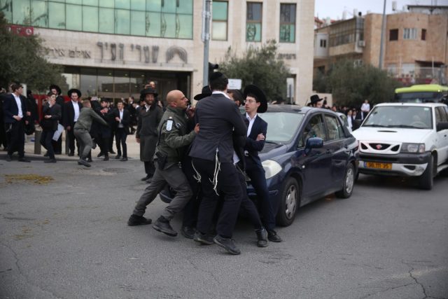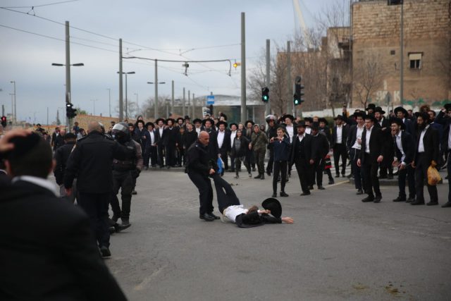 מאות חרדים קיצוניים, מפגינים היום (חמישי) וחוסמים בגופם את התנועה בירושלים, במחאה על מעצרו של עריק מהפלג הירושלמי. מהמשטרה נמסר כי סך הכל נעצרו 30 מפגינים נעצרו, בתום שלוש שעות של הפגנה.