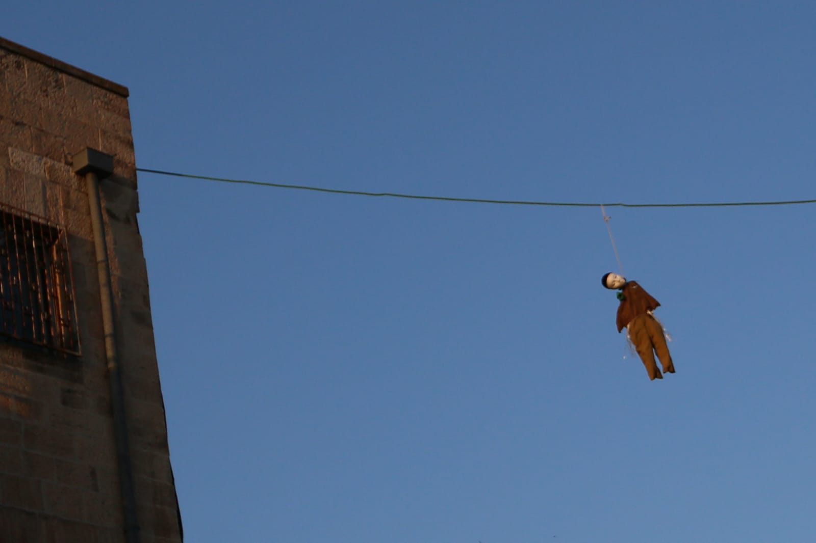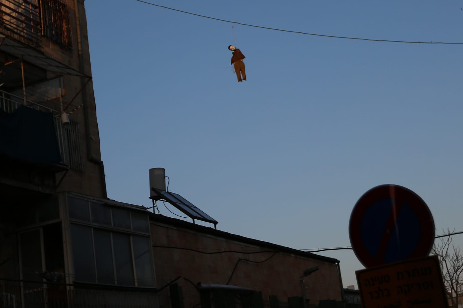 הבובה עם מדים צה"ל נתלתה דקות לפני כניסת השבת, כוחות המשטרה שהגיעו בתחילה, יחידת יס"מ לא הצליחו להוריד את הבובה, לאחריהם כוחות כיבוי אש גם הם נאלצו לחזור אחורנית בלי להוריד את הבובה שנתלתה בשכונה.