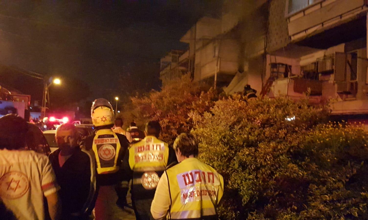 מדוברות מד"א נמסר: "בשעה 19:22 התקבל דיווח במוקד 101 של מד"א במרחב לכיש על ככל הנראה תקרת מרפסת שקרסה, ככל הנראה בעקבות פיצוץ בלון גז וכתוצאה מכך התלקחה אש במבנה ברחוב החיד"א באשקלון. חובשים ופראמדיקים של מד"א מעניקים טיפול רפואי ומפנים לבי"ח ברזילי אישה כבת 55 במצב קשה עם פגיעה רב מערכתית וכוויות בכל חלקי גופה. צוותי מד"א מבצעים במקום סריקות לאיתור נפגעים נוספים."