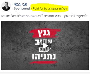 לאחר שהמפרסמים מקבלים אישור מפייסבוק, המועדות הפוליטיות יציגו מידע על הגורם המממן. אם עד היום הפוסטים המקודמים היו מראים לגולשים רק את המילה "ממומן", כעת תוכלו לראות מי שילם על קידום המודעות הפוליטיות. כך למשל במודעות המקודמות בעמוד של אבי גבאי נכתב כי הפוסט ממומן על ידי מפלגת העבודה, ומודעות מקודמות בעמוד של איילת שקד מוצגות כמקודמות על ידי הימין החדש.