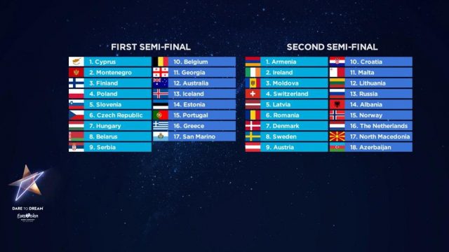 מפיקי האירוויזיון פרסמו היום (ג') את סדר המשתתפים של שני חצאי הגמר של אירוויזיון 2019, שיתקיימו ב-14 וב-16 במאי באקספו תל אביב.