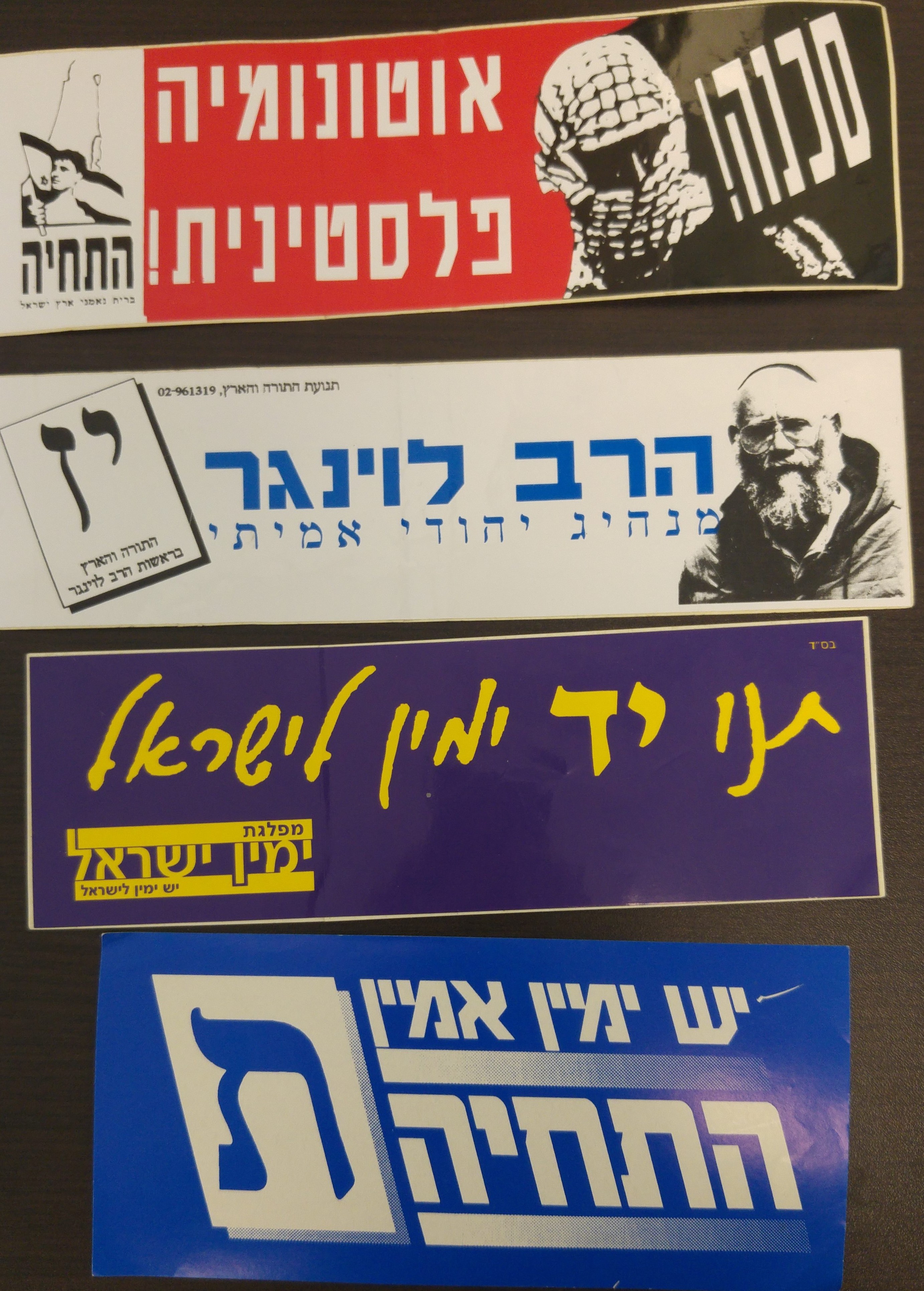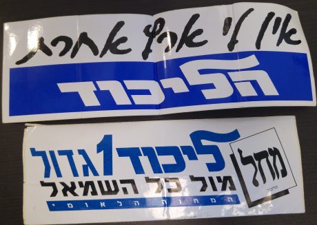הסטיקרים של אז, יכולים לשמש גם היום בתעמולת הבחירות עם התאמות קלות.