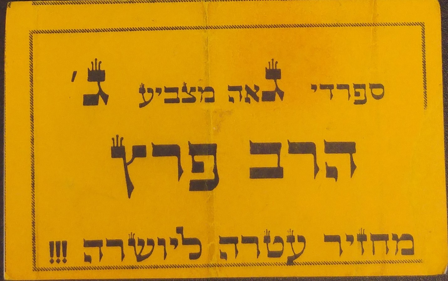 בבחירות 92 הוא חבר לאגודת ישראל, כדי למשוך קולות ספרדיים שלא יזלגו לש"ס, עם הכותרת שנראית היום תלושה מהמציאות: ספרדי גאה מצביע ג'.