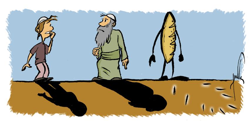 המאייר אלחנן בן-אורי מציג בכל שבת קריקטורה הומוריסטית המציגה את אחד מהפסוקים המופיעים בפרשת השבוע . נסו למצוא בעצמכם את הפסוק עליו מכוון הציור. הפתרון השבוע הוא בן אחת עשרה מילים.