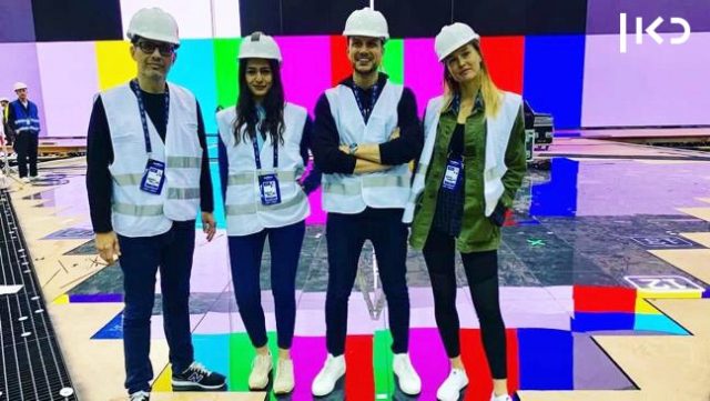 הרביעייה זכתה גם לחזרה ראשונה וסיור באולם שהולך ונבנה עם קסדות ואפודי מגן, כדי לשמור כמובן על בטיחות בתוך אתר הבנייה הענק לבמה הגדולה והמושקעת.