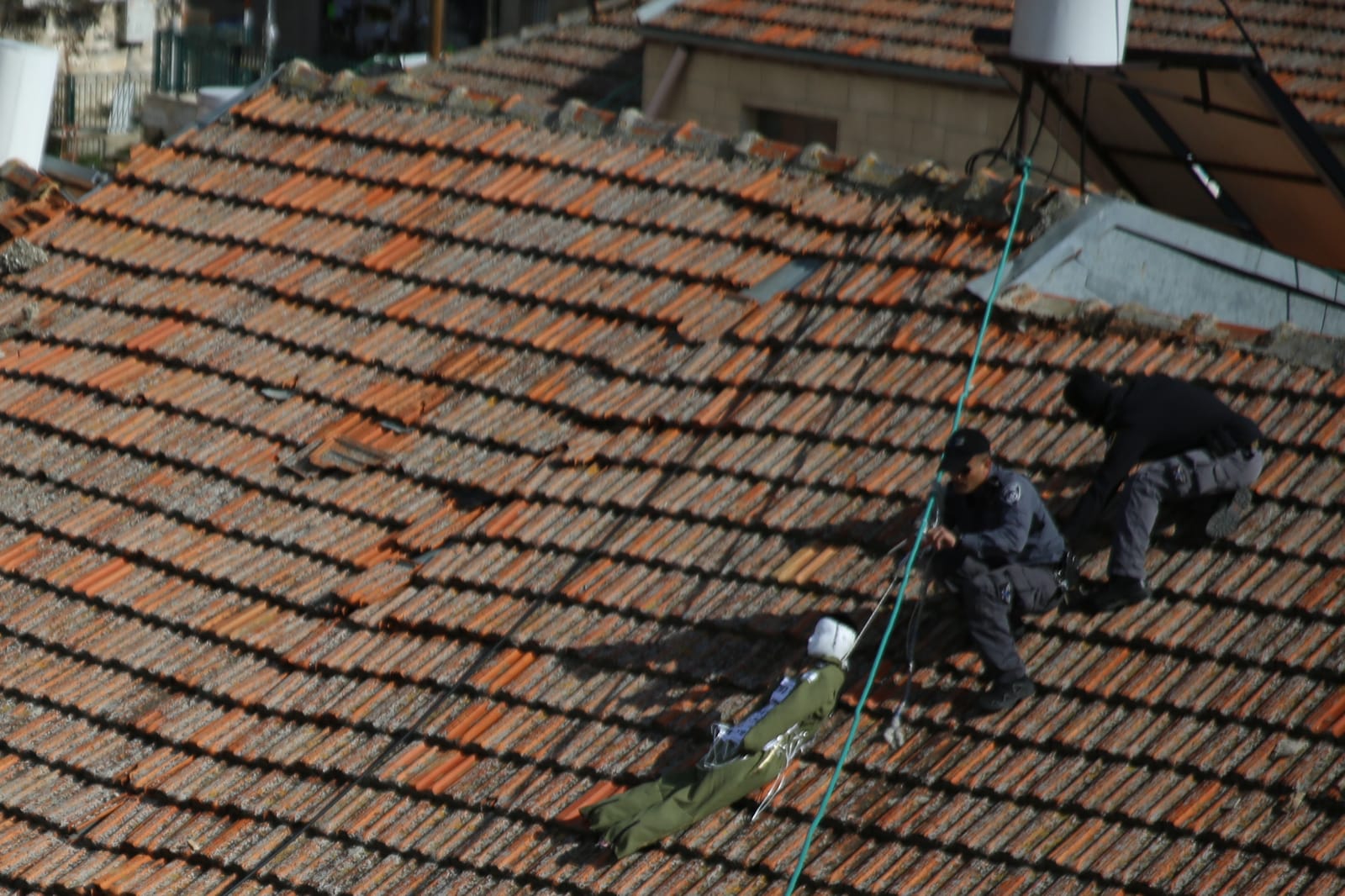 מדוברות משטרת ירושלים נמסר: "כוחות משטרה פעלו לפני זמן קצר בשכונת מאה שערים בירושלים והורידו בובה בדמות חייל שנתלתה על אחד הגגות".
