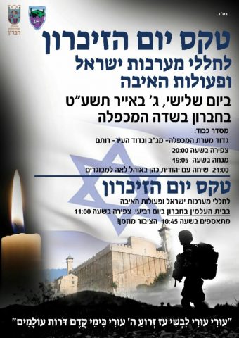 ישראל מרכינה את ראשה: יום בו אנו זוכרים את חללי מערכות ישראל שנפלו על הגנת הארץ ונרצחי פעולות האיבה. יום הזיכרון ייפתח הערב (שלישי) בשעה 20:00 בצפירה של דקת דומייה.