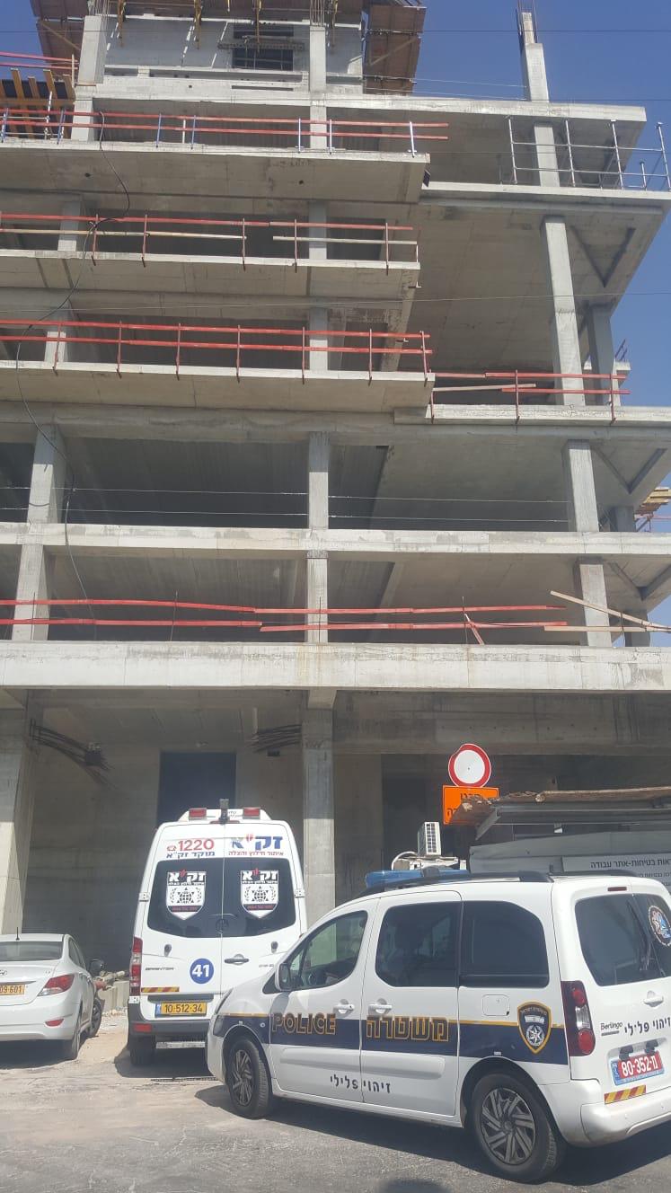 בתוך כך, בשעה 14:53 התקבל דיווח במוקד 101 של מד"א במרחב אשר על פועל שנפל מגובה באתר בנייה באזה"ת בכרמיאל. חובשים ופראמדיקים של מד"א מעניקים טיפול רפואי ומפנים לבי"ח נהריה גבר כבן 22 במצב בינוני עם חבלות בגפיים ובג