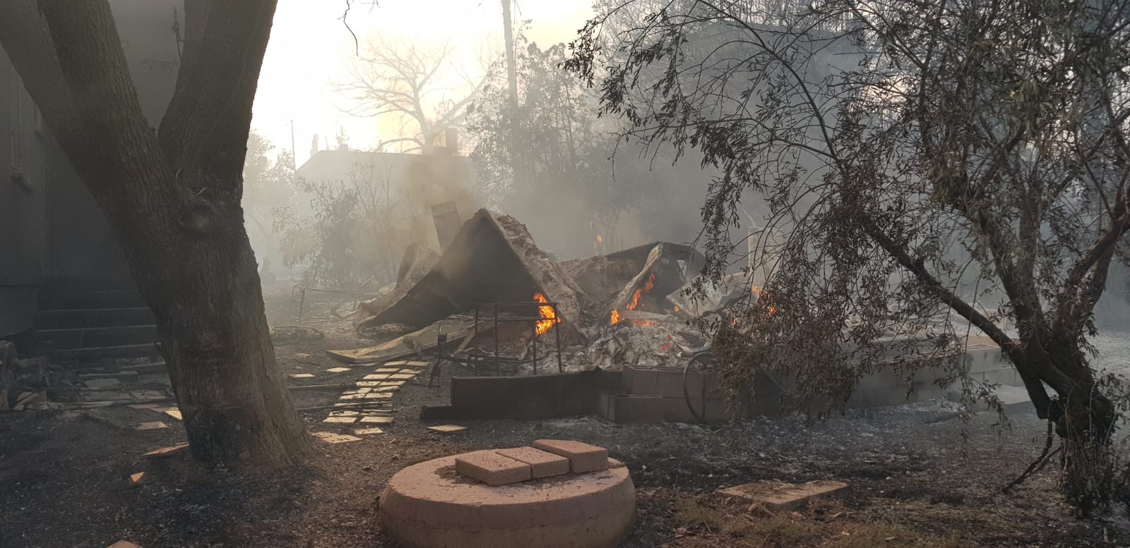 על פי שירות הכיבוי, לפחות 16 בתים עלו באש בכל אחד משני המוקדים העיקריים, ובוצע פינוי מלא של היישובים על ידי משטרת ישראל. לדברי עמי אשד, מפקד מחוז מרכז בשירות, כמעט 10,000 איש פונו מבתיהם תוך שעה. "המצב קשה מאד, כמעט כל היישוב הוחרב" אמר.