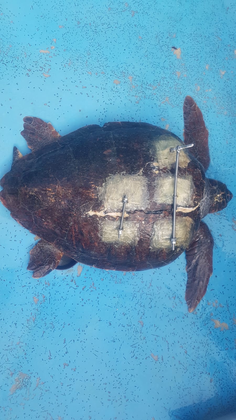 החוקרים שראו שהצבה צפה על פני המים ולא מצליחה לצלול או לברוח מהם (התנהגות מאוד לא אופיינית לצב בריא) יצרו קשר עם מרכז ההצלה שתדרך אותם להעלות את הצבה אל הסירה והם אף הגדילו לעשות והביאו את הצבה אל מרכז ההצלה לצבי ים במכמורת.