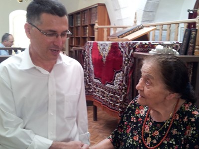 עם מרים ששון ניצולת תרפ"ט בבית הכנסת אברהם אבינו (ציפי שליסל, סוכנת תצפית)