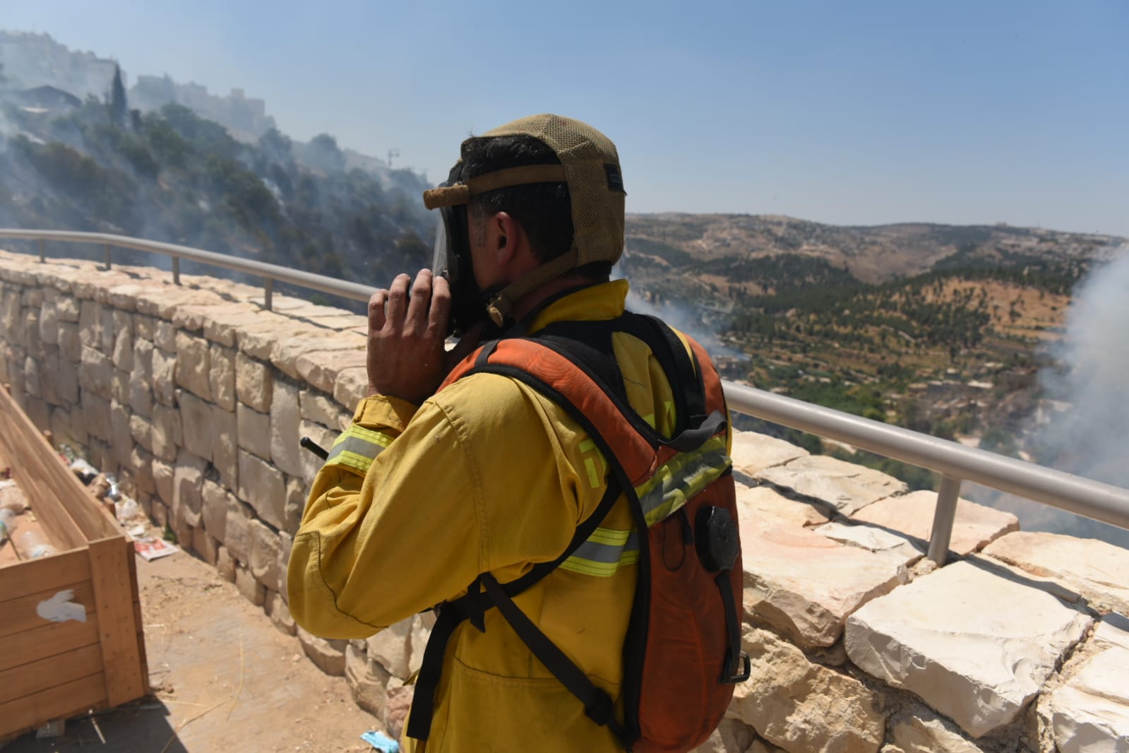 במהלך פעולות הכיבוי, עקב מיסוך העשן הכבד מהשריפה, תוך כדי פעולות בלימת האש, מפקדת צוות לוחמי אש נפלה לתוך בור בוער בשטח השריפה. לוחמי אש מיחידת החילוץ של כבאות והצלה ירושלים מחלצים אותה כעת לאחור, להמשך טיפול רפואי של כוחות מד"א ירושלים המאבטחים את פעילות לוחמי האש בשריפה. מצבה קל.