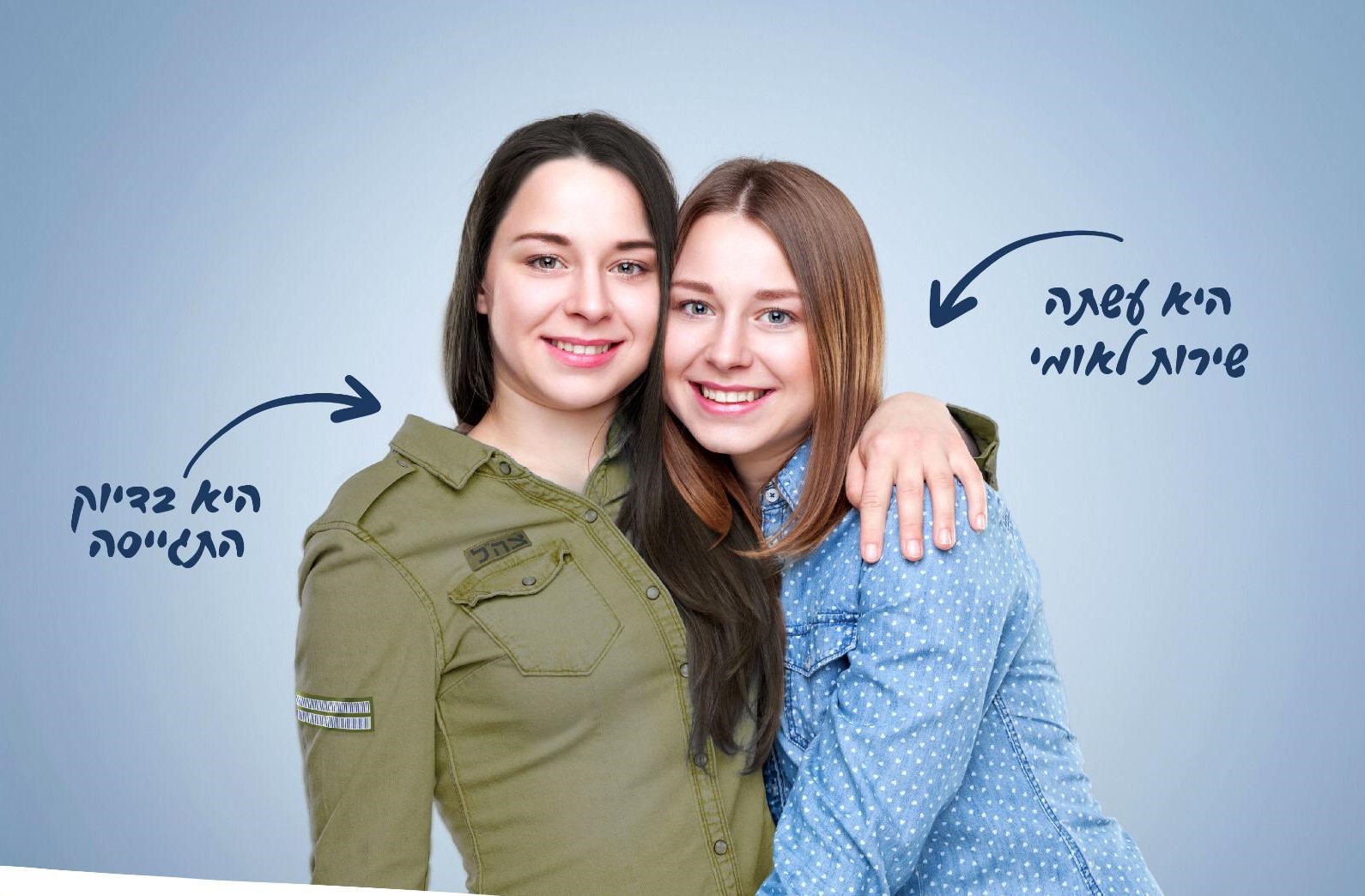 עם זאת, כפי שניתן לראות בתיעוד נוסף שהגיע לידי סרוגים, מדובר בזוג אחיות תאומות, שנוהגות להצטלם בתנוחה זהה, כאן נראות שתיהן בלבוש אזרחי, מעט לפני הגיוס, שימו לב ששערה של החיילת צבוע בצבע חום, בדיוק כמו הצבע של אחותה התאומה.