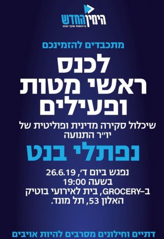 בהזמנה תחת הכותרת "הימין החדש בראשות שקד ובנט", נכתב כי "לכנס ראשי מטות ופעילים שיכלול סקירה מדינית ופוליטית של יו"ר התנועה נפתלי בנט" למפגש שייערך ביום רביעי הקרוב, בתל מונד.