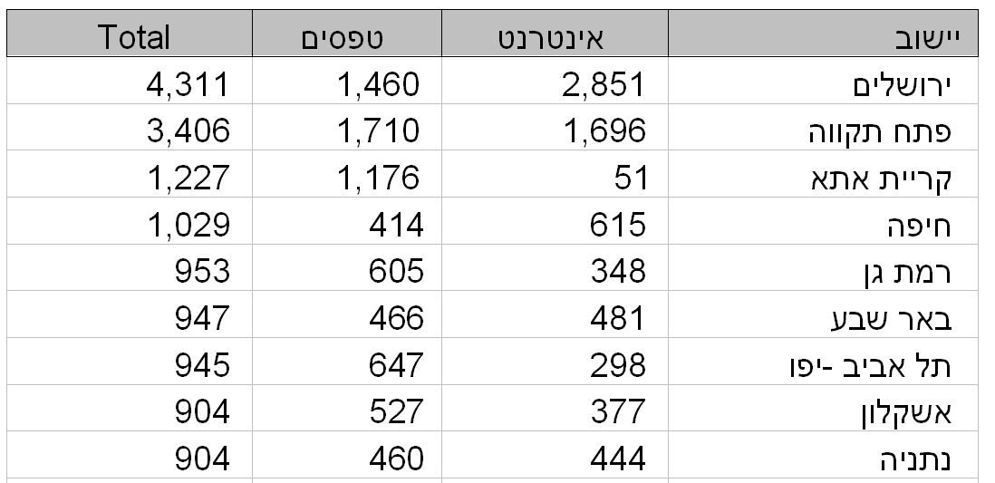 בפילוח עירוני, בירושלים, כצפוי יש הכי הרבה מתפקדים, אחר כך בפתח תקווה, ההפתעה הגדולה היא בקרית אתא, שם הצליחו לפקוד כ1,200 באמצעות טפסים ידניים וחיפה.