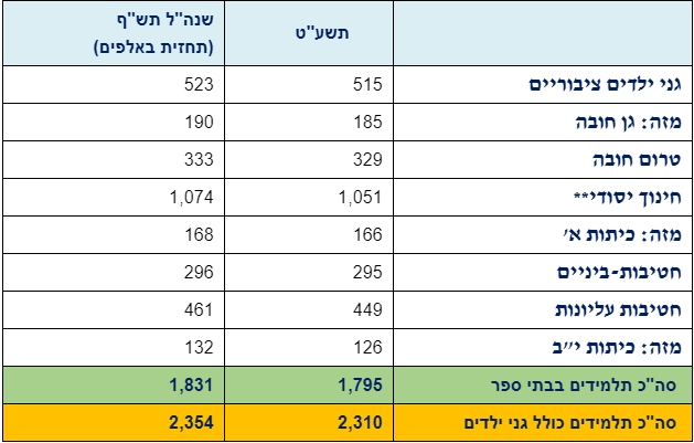 מתוכם, כ- 168,000 תלמידי כיתות א' שיעשו את צעדיהם הראשונים במערכת החינוך, לצדם, כ- 132,000 תלמידי י"ב שיחתמו השנה את 12 שנות לימודיהם במערכת. ילד איתם נכנסים גם 201,000 מנהלים ומורים.