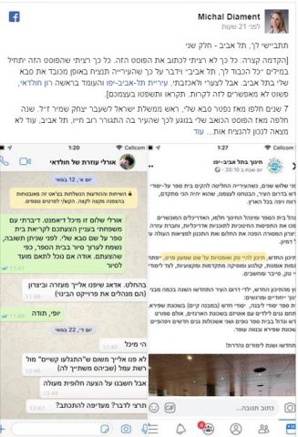 בפוסט בעמוד הפייסבוק שלה, אותו העלתה אמש דיאמנט, היא טענה כי עיריית תל אביב הבטיחה להנציח את שם סבה באמצעות בית ספר חדש שהוקם בעיר, אך גילתה שהשם שנבחר הוא "תיכון שמעון פרס". "שבע שנים חלפו מאז נפטר סבא שלי, שנה חלפה מאז הפוסט הכואב שלי בנוגע לכך שהעיר שבה התגורר רוב חייו, תל אביב, עוד לא מצאה לנכון להנציח אותו".