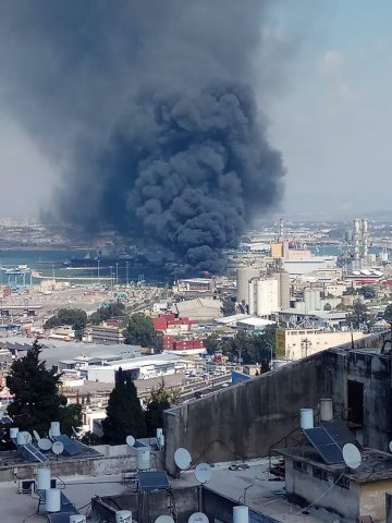 שריפה גדולה במיכל במפעל שמן בחוף שמן