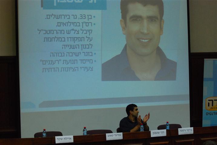 העימות נערך אתמול (ב') באוניברסיטת בר-אילן, ערב הבחירות לראשות הבית היהודי, -כשלבמה עלו בזה אחר זה ארבעת המתמודדים הצעירים: איילת שקד, עמיעד טאוב, ג'רמי גימפל ויוני שטבון.