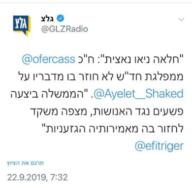 בהמשך טענה נגד המלצתם על גנץ: "האם על טיפוסים מפוקפקים כאלה בני גנץ רוצה לבסס את ממשלתו?"