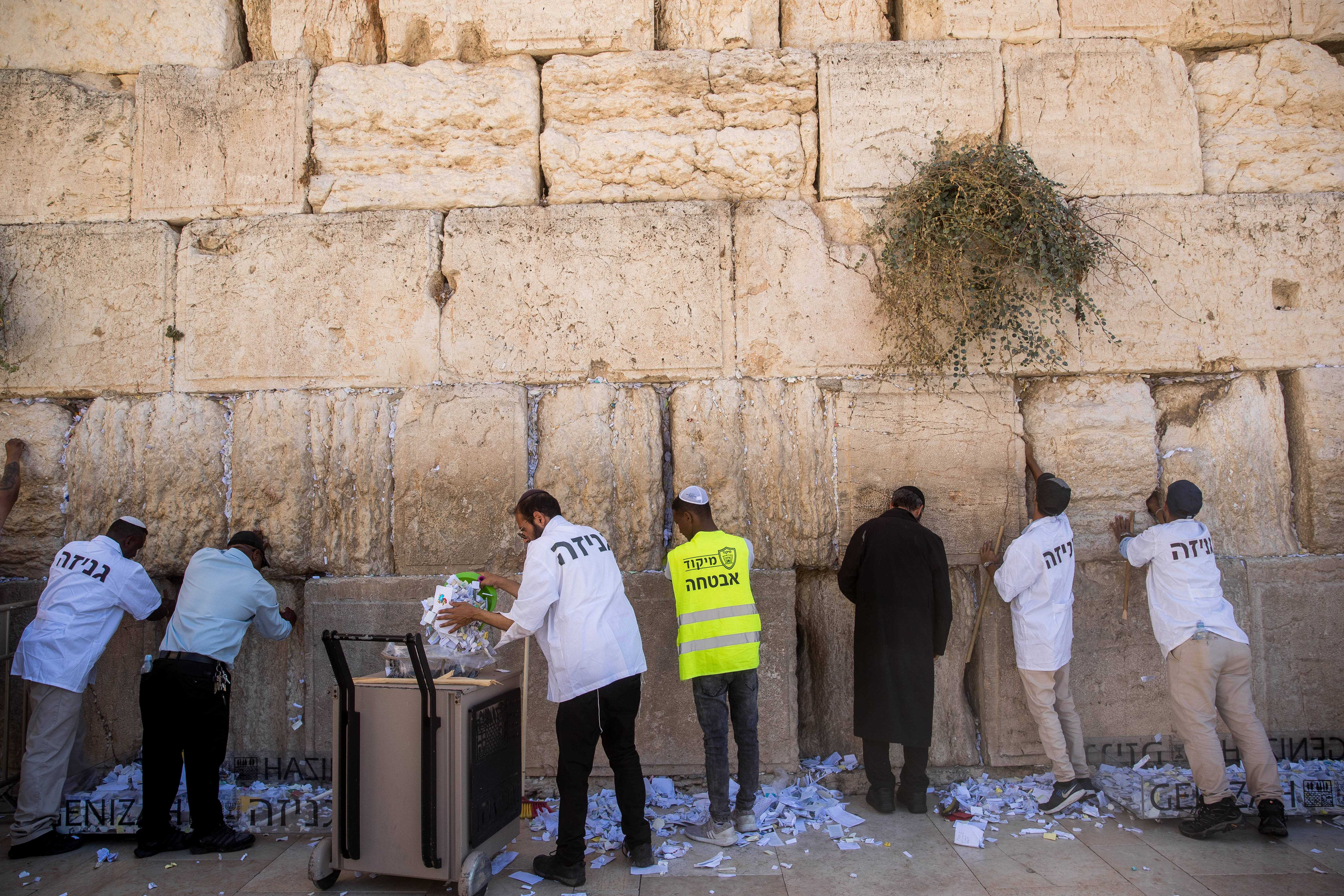 החל משעות הבוקר (שלישי) עמלים עובדי הקרן למורשת הכותל המערבי על פינוי הפתקים שנטמנו בין נדבכי הכותל המערבי. מליוני הדפים שנאספים יועברו להר הזיתים, שם יטמנו בקבורה יחד עם ספרי הקודש המועברים לגניזה.
