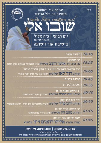 הערב (ד')  יתקיים בישיבת ההסדר בחיפה כנס התשובה השנתי הגדול בצפון "שובו אלי".